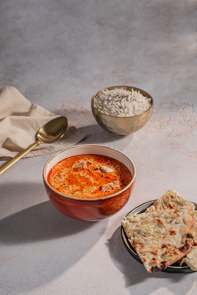 3/ Соус дайындау: Сол табада, туралған пиязды алтын түске дейін қуырыңыз. Ұсақталған сарымсақ пен ұнтақталған имбирьді қосып, кориандр, зира және гарм масаланы қосыңыз. Дәмі шыққанша араластырыңыз, содан кейін туралған қызанақ, паприка және тұзды қосыңыз. Соус қоюланғанша пісіріңіз.